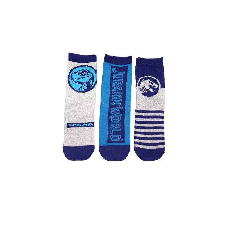 șosetele Jurassic World. Setul include 3 perechi de șosete flexibile și respirabile, care asigură o potrivire optimă pe picior, fiind decorate cu eroii preferați.