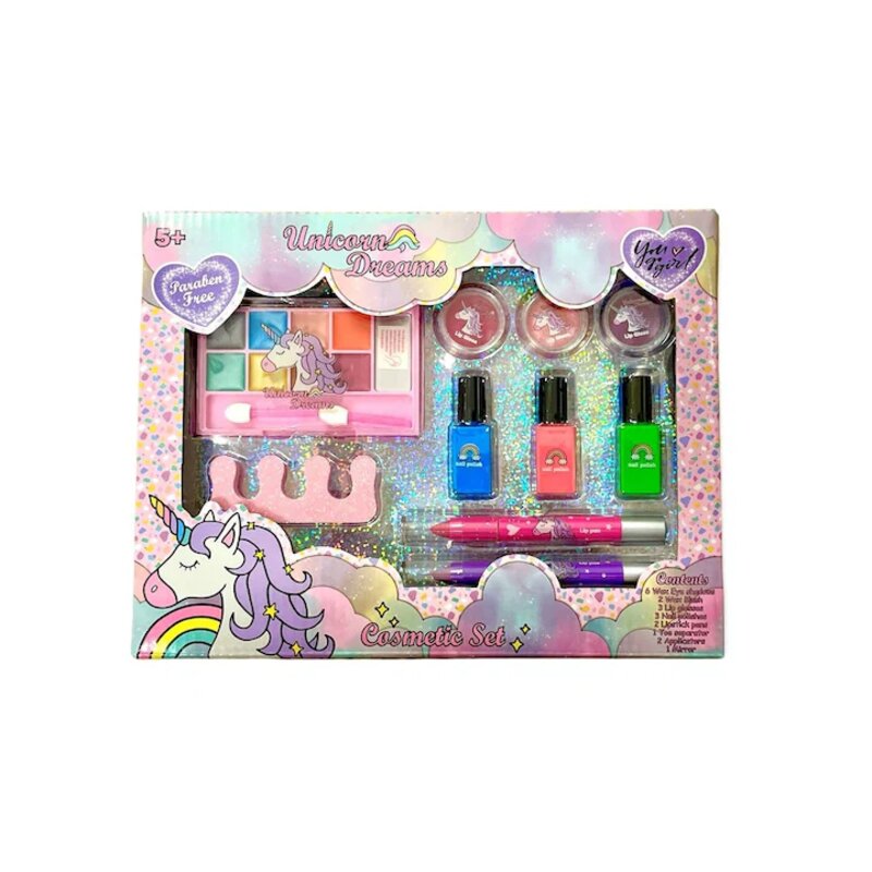 Set Machiaj pentru copii, Non-toxic, +5 ani, 19 piese, 26x20x3 cm, Unicorn Dreams