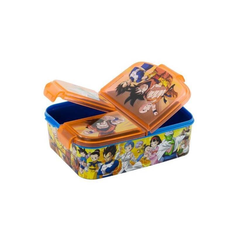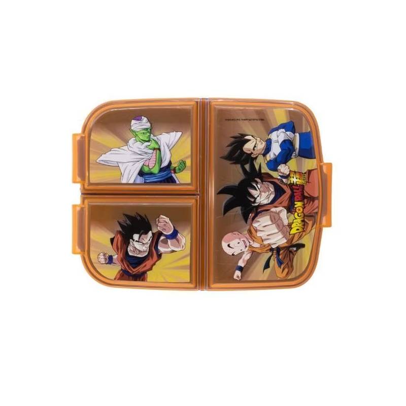 Cutie sandwich, dreptunghiulară multicompartimentată 19,5x16,5x6,7 cm Dragon Ball PortocaliuCutie de prânzpătratăconcepută cu 3 compartimente perfect separate pentru a evita amestecarea mirosurilor și a păstraalimentele proaspete. Ideal pentru însoțireacopiilor lașcoalăsauieșiri.