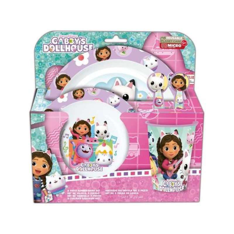 Set veselă 5 piese, plastic fara BPA, Gabby's Dollhouse,