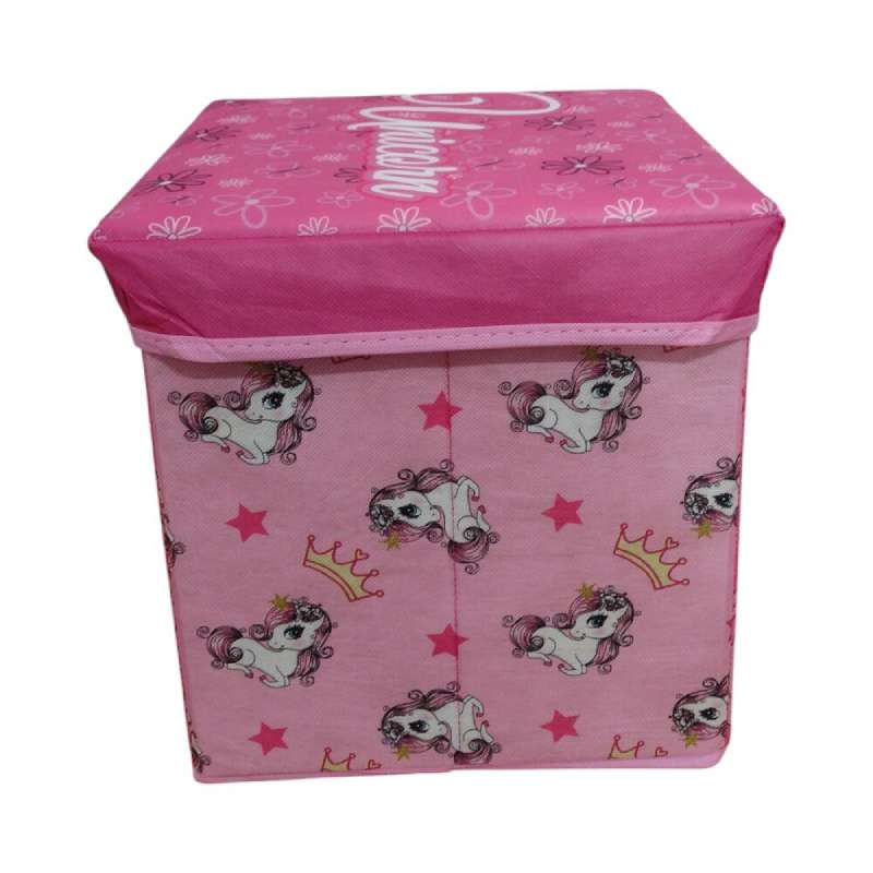 Taburet Pliabil cu Spațiu de Depozitare, Tip Cutie, Multicolor, Sarcină Maximă 80 kg, 30x30x30 cm, Unicorn