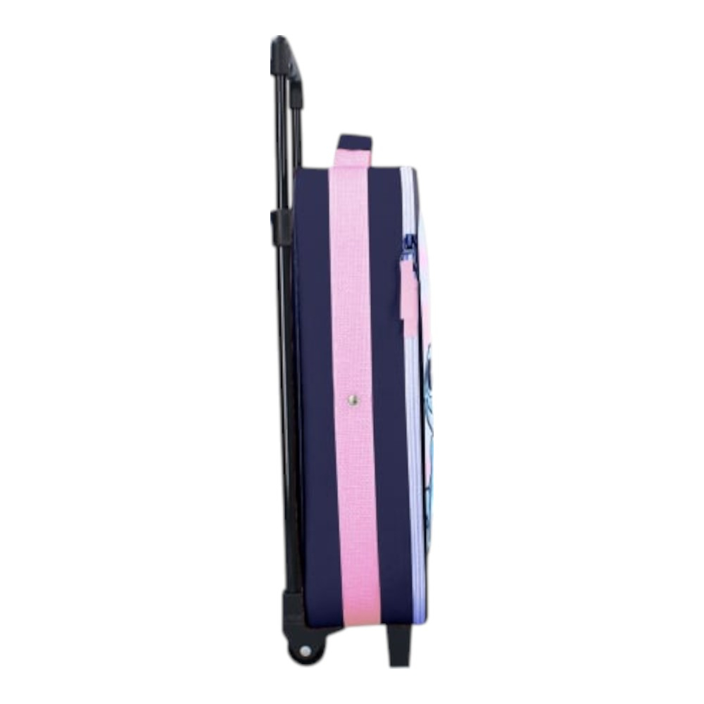 Trolerul pentru copii Made To Roll din universul Stitch este companionul potrivit pentru micile aventuri zilnice sau vacanțe. Cu dimensiunile de 41x30x14 cm, asigură spațiu generos pentru haine, fiind perfect pentru excursii sau weekenduri în familie. Imprimeul multicolor este decorat cu îndrăgitul Stitch, adăugând un plus de personalitate și bună dispoziție fiecărei călătorii. Trolerul este prevăzut cu mâner telescopic, roți rezistente și un mâner de transport fix, pentru o manevrare ușoară de către cei mici. Compartimentul principal este spațios și ușor accesibil, ideal pentru organizarea lucrurilor personale. Este un accesoriu practic, rezistent și atractiv, perfect pentru copiii care iubesc personajele Disney și vor să le ia cu ei peste tot.