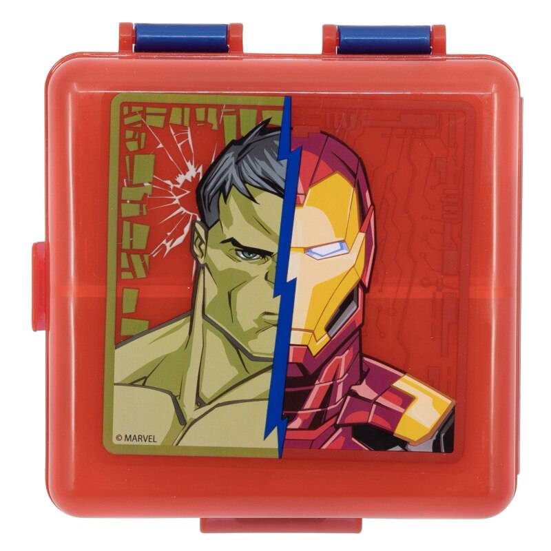 Cutie sandwich multicompartimente, multicolor, fără BPA, Invincible Force, Avengers, MarvelCutie de prânzpătratăconcepută cu 3 compartimente perfect separate pentru a evita amestecarea mirosurilor și a păstra alimentele proaspete. Ideal pentru însoțirea copiilor lașcoalăsauieșiri.