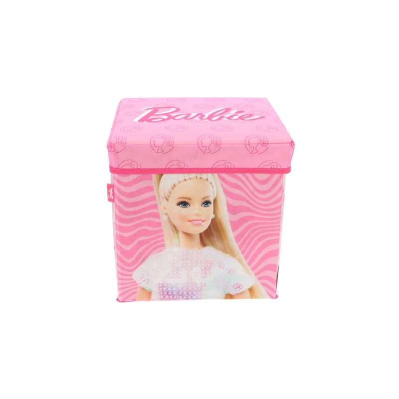 Taburet Pliabil cu Spațiu de Depozitare, Tip Cutie, Roz, Sarcină Maximă 80 kg, 30x30x30 cm, Barbie