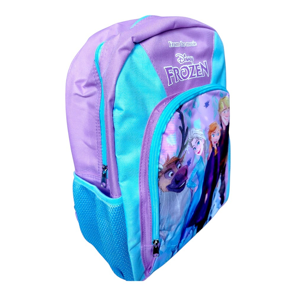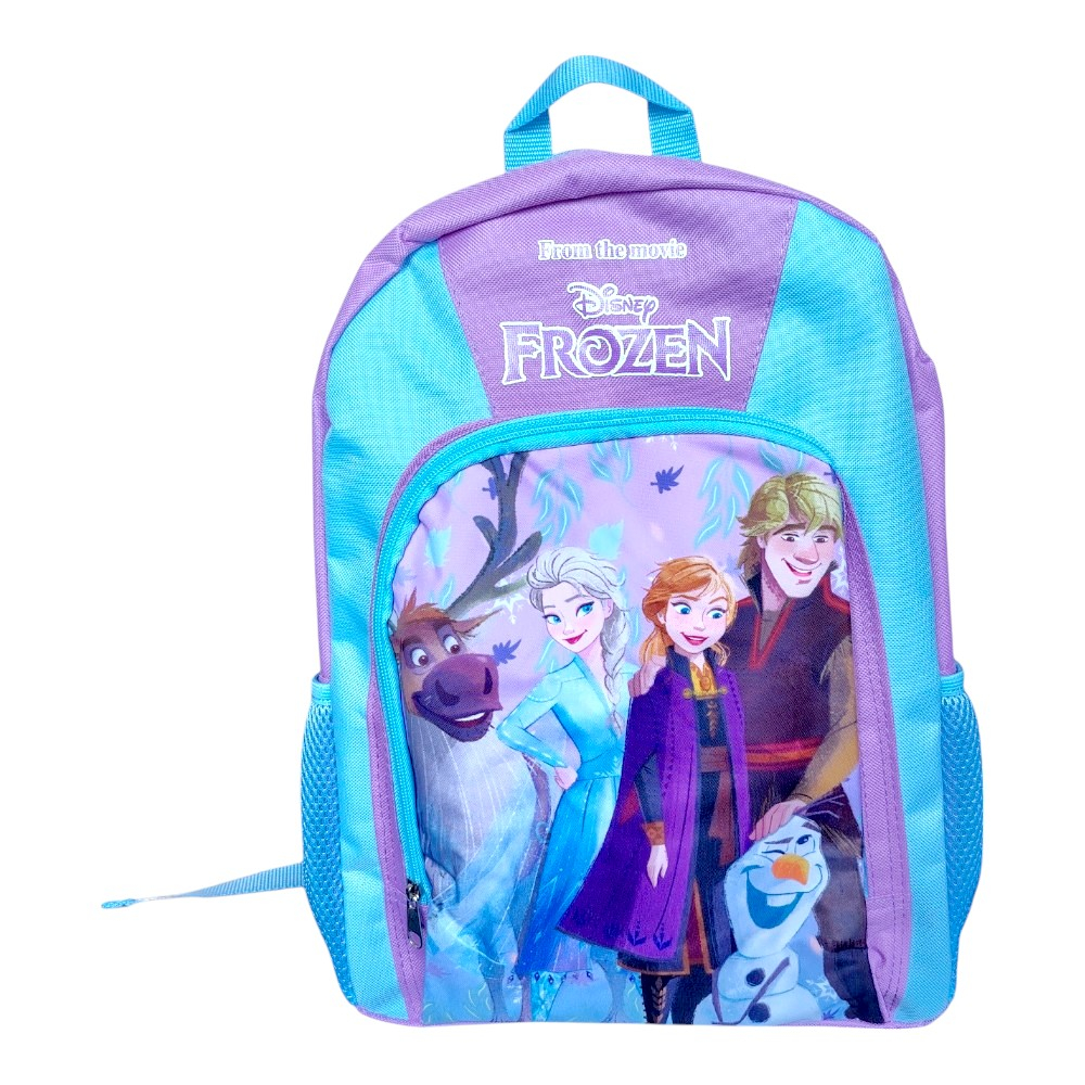 Ghiozdan pentru copii, dimensiuni 40x30x15 cm, cu model multicolor și aspect simpatic cu personajele din Frozen, potrivit pentru micile iubitoare ale universului Disney. Are două compartimente încăpătoare, perfect pentru cărți, caiete și alte rechizite importante. Bretelele întărite și ajustabile asigură confort și susținere în fiecare zi. Ușor, practic și plin de culoare, acest ghiozdan este companionul ideal pentru școală sau activitățile zilnice.