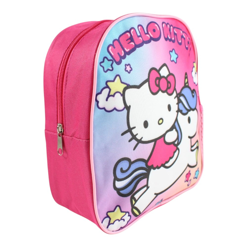 Rucsacul pentru copii, cu dimensiunile 26x22x10 cm, este potrivit pentru grădiniță sau activitățile zilnice. Aspectul multicolor cu personajul preferat Hello Kitty adaugă un plus de veselie și stil. Bretelele întărite și ajustabile oferă confort sporit și o utilizare ergonomică. Compartimentul principal asigură spațiu încăpător pentru obiectele personale ale copilului. Este fabricat din materiale rezistente, fiind atât util, cât și atrăgător pentru cei mici.