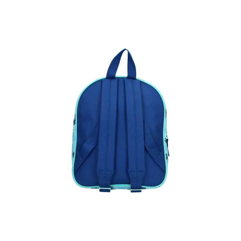 Stitch este un koala albastru din altă lume și unul dintre protagoniștii filmului și serialului cu același nume „Lilo & Stitch”. Această koala energică este piesă centrală a acestui rucsac albastru. Buzunarul frontal și părțile laterale sunt imprimate cu detalii asortate și variații mai mici ale Stith. Acest buzunar frontal și compartimentul principal mare sunt ușor de deschis și închis cu închiderea cu fermoar. Rucsacul este finisat cu detalii albastre pe fermoar și linii. Bretelele de umăr sunt reglabile, iar geantă poate fi purtată și pe buclă.