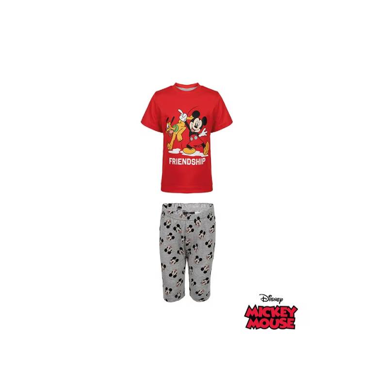 Pijama copii, cu mânecă scurtă, 100% bumbac, roșu/gri, Mickey Mouse, Disney, spi220