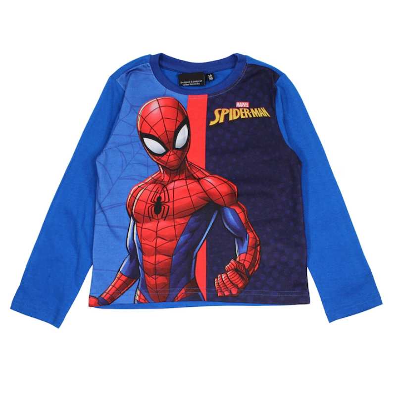 Pijamale copii cu mânecă lungă, 100% bumbac, albastru, Spiderman, Marvel