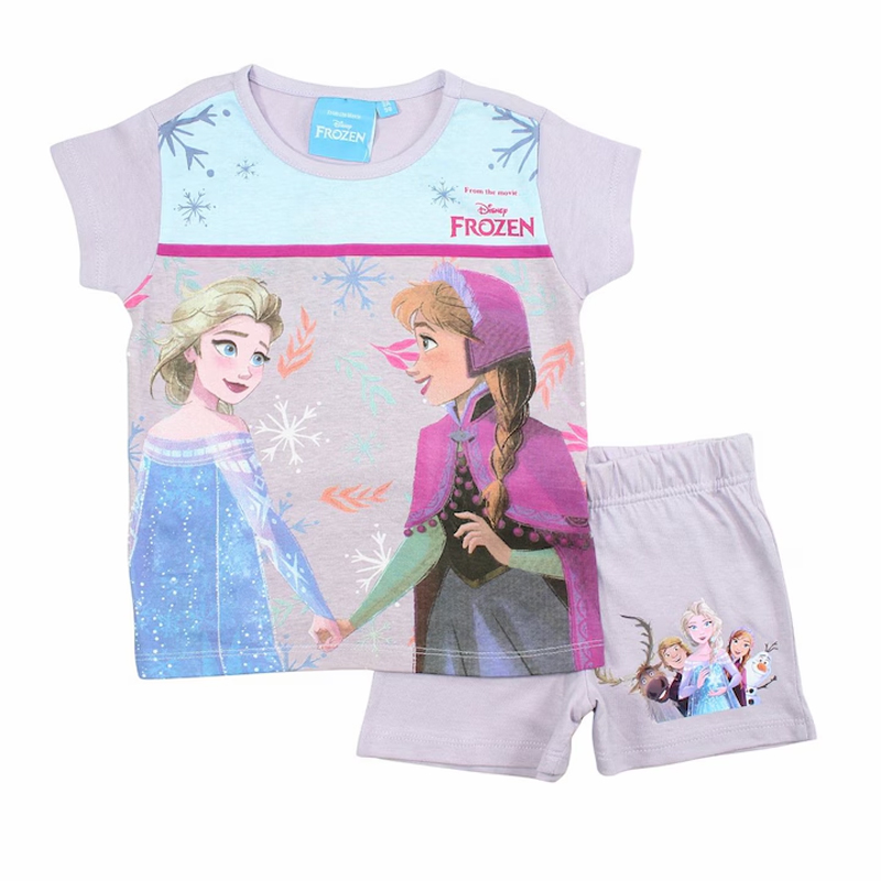 Pijamale copii cu mânecăscurtă, 100% bumbac, multicolor, Anna and Elsa, Frozen, Disney