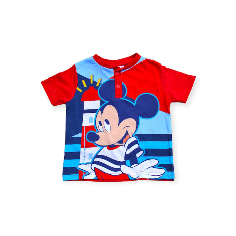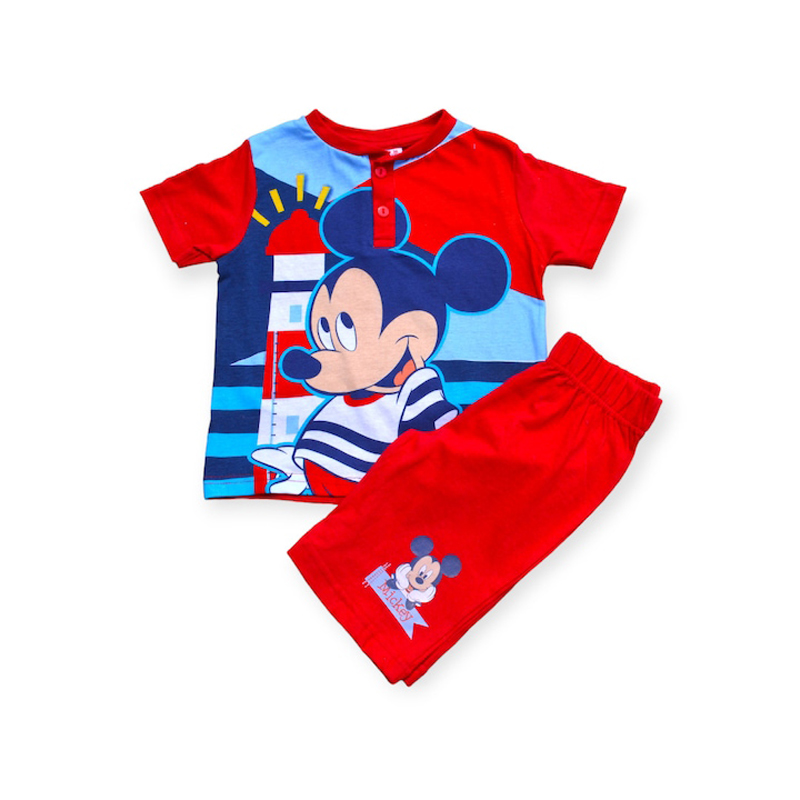 Pijamale copii cu mânecă scurtă, 100% bumbac, roșu, Happy, Mickey Mouse