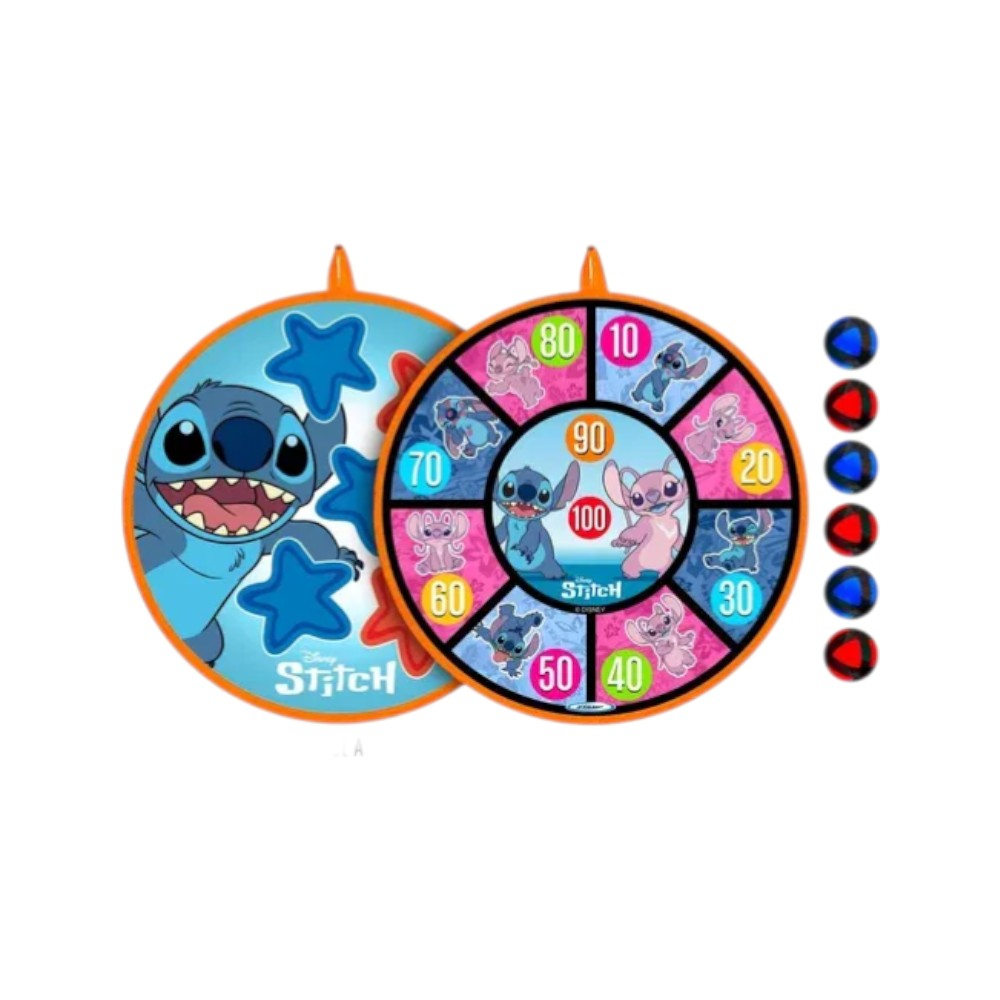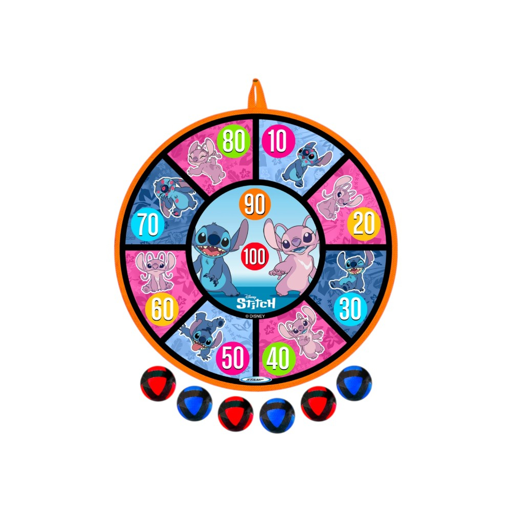 Setul de joc cu țintă inspirat de personajul preferat Stitch este potrivit pentru distracția celor mici și dezvoltarea coordonării. Placa țintă are un diametru de 36 cm și este dotată cu două fețe, asigurând mai multe variante de joc și niveluri de dificultate.