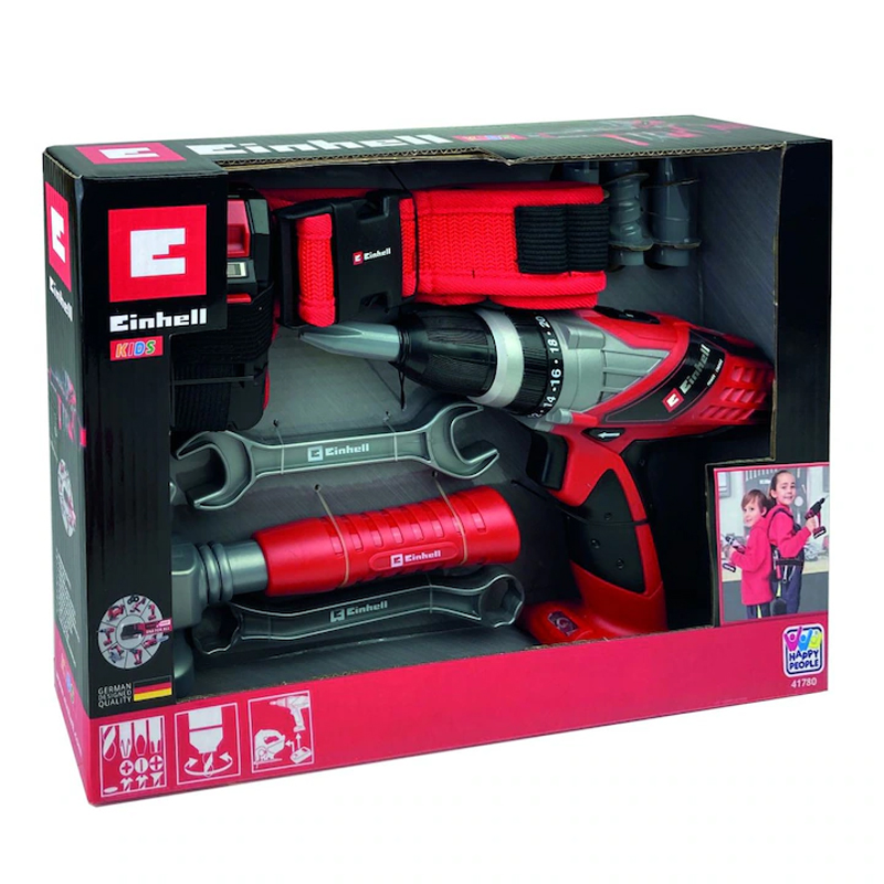 Centură cu unelte, ciocan, cheie fixă, cheie hexagonală, șurubelniță cu acumulator și 4 biți, multicolor, Einhell Kids
