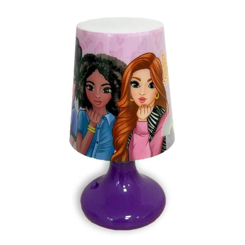 Lampa de masă mini LED cu model Glam girls Avantajul lămpii este că este portabilă, deoarece funcționează cu baterii. Datorită acestui lucru, poate fi amplasat oriunde în camera copilului. Material: Plastic Dimensiune: 18,5 x 10 cm Produsul funcționează cu baterii (3 baterii AA, care nu sunt incluse!)