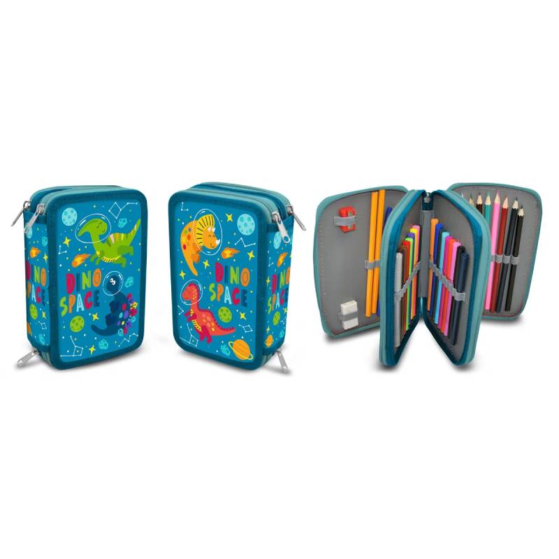Penar echipat cu trei compartimente, multicolor, Dino Space