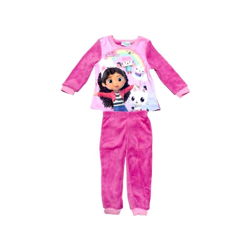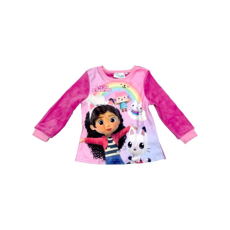 Adaugă un strop de magie și distracție în rutină de seară a copilului tău cu această pijama adorabilă inspirată de Gabby's Dollhouse! Fabricată din cocolino moale și pufos, pijamaua oferă confort și căldură, fiind ideală pentru nopțile reci.