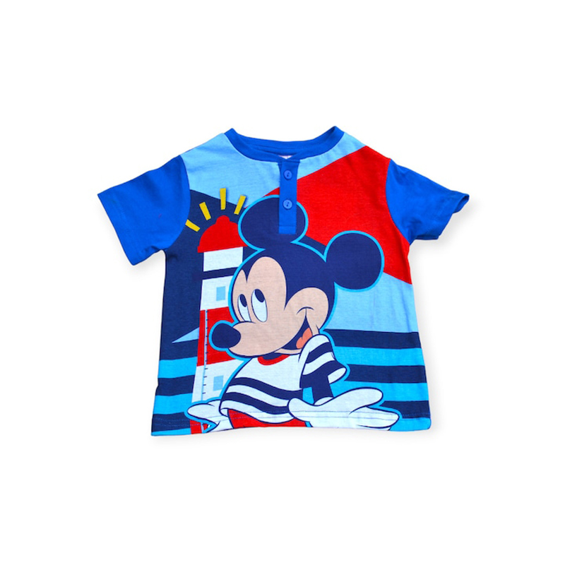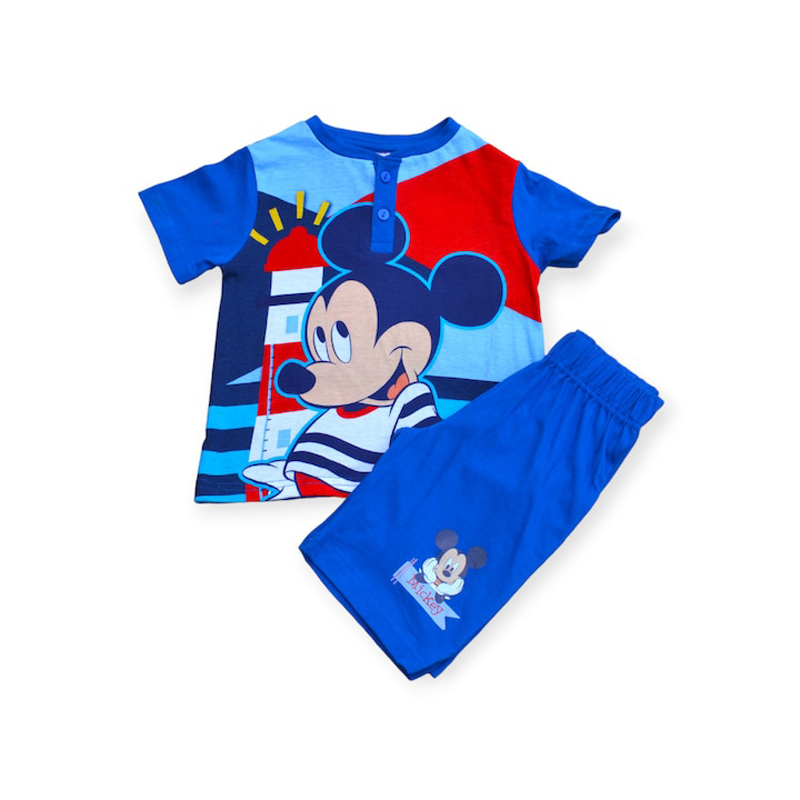 Pijamale copii cu mânecă scurtă, 100% bumbac, albastru, Happy, Mickey Mouse