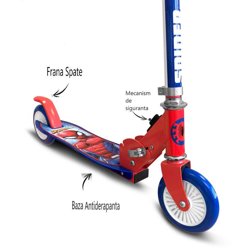 Această trotinetă pliabilă copii, model Spiderman este instrumentul perfect pentru a-i încuraja pe cei mici să-și dezvolte echilibrul și coordonarea motorie într-un mod distractiv și sigur. Cu Spiderman alături, fiecare călătorie devine o aventură plină de energie și entuziasm pentru micuții dvs. aventurieri.