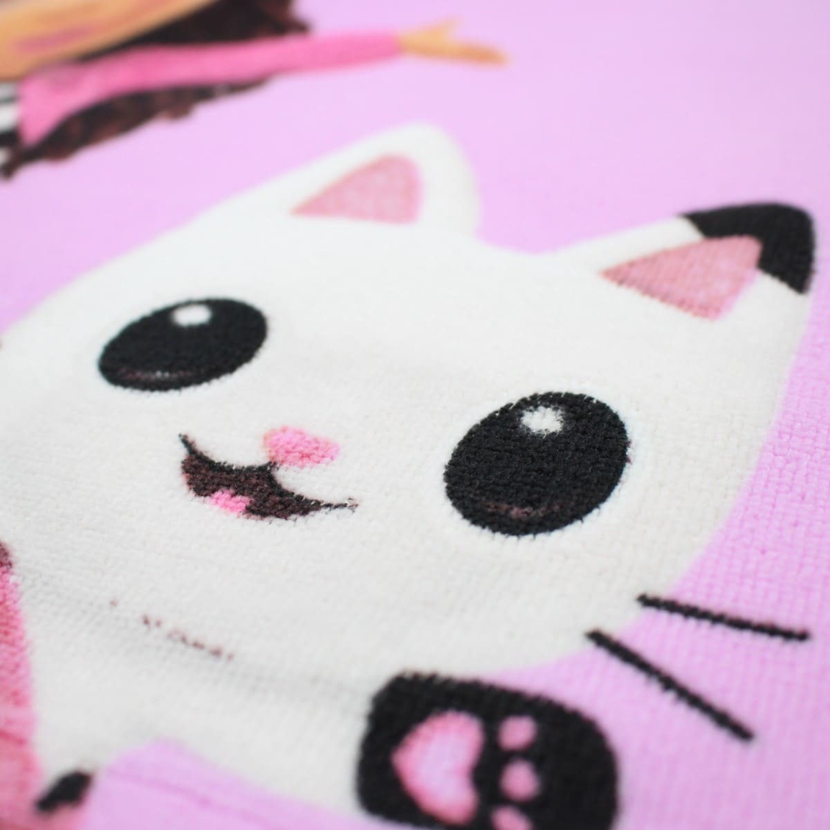 Prosop de baie pentru copii, tip poncho, multicolor, dimensiuni 50x100 cm, din colectia So Fun, Gabby's Dollhouse. Are un imprimeu jucaus si colorat, inspirat de personajul preferat Gabby's Dollhouse, ideal pentru momentele de dupa baie sau joaca la piscina. Confortabil si practic, ofera o uscare rapida si un plus de distractie pentru cei mici.