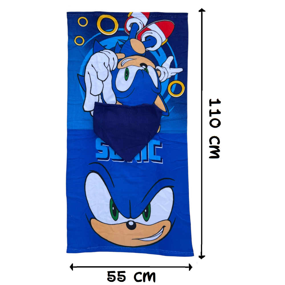 Prosop de baie pentru copii, tip poncho, multicolor, dimensiuni 50x100 cm, din colectia So Fun, Sonic. Are un aspect energic si jucăuș, cu model inspirat de rapidul si indragitul personaj Sonic. Potrivit pentru momentele de dupa baie sau distractia la piscina, ofera confort, uscare rapida si un plus de stil pentru cei mici.