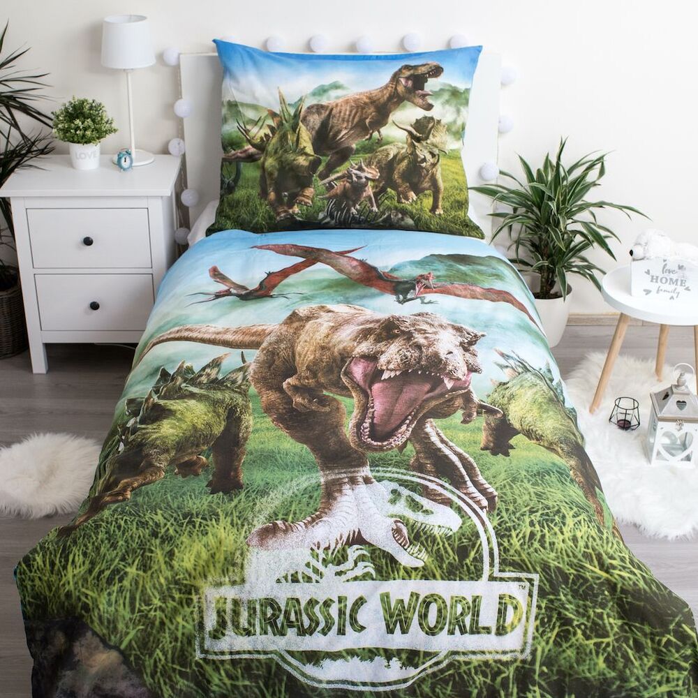 Set lenjerie pat copii, multicolor, 2 piese, 100% bumbac, 140×200 cm, 70×90, Forest, Jurassic World