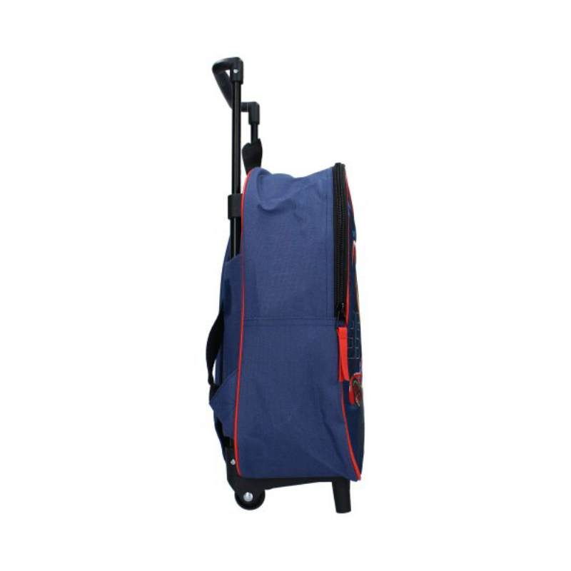 Fulgerul McQueen strălucește pe partea din față a acestui rucsac cu cărucior Cars distractiv. Este ideal pentru orice mic aventurier care poate merge într-o petrecere în pijama, în vacanță sau în ieșire. Acest cărucior are o culoare bleumarin și prezintă un imprimeu integral cu personaje mici Cars, cum ar fi un fulger și numărul iconic 95. În plus, căruciorul este finisat în culoarea roșie Cars. Are un compartiment principal mare și un buzunar frontal spațios, care pot fi ambele închise cu fermoar. Căruciorul are 2 roți și un mâner extensibil, astfel încât copilul să își poată transporta întotdeauna propriile lucruri. Geantă poate fi purtată și pe spate datorită bretelelor de umăr, care sunt reglabile în lungime.