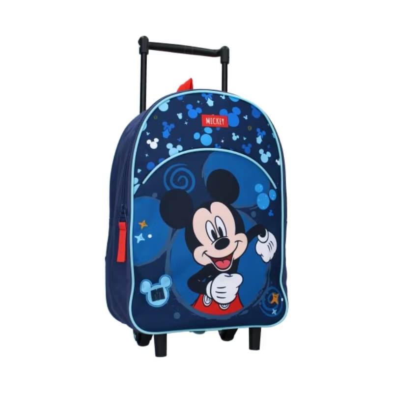 Mickey Mouse strălucește pe partea din față a acestui drăguț troler. Este ideal pentru orice mic aventurier care poate merge într-o petrecere în pijama, într-o vacanță sau într-o excursie de o zi. Acest troler are o culoare bleumarin și are un imprimeu integral al micului Mickey Mouse. figuri. Dispune de un compartiment principal mare și un buzunar frontal spațios, ambele putând fi închise cu fermoar. Trolerul are 2 roți și un mâner extensibil, astfel încât copilul să își poată transporta întotdeauna propriile lucruri. Geantă poate fi, de asemenea, purtat pe spate datorită bretelelor de umăr, care sunt reglabile în lungime.